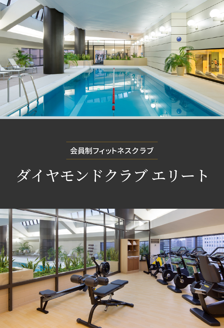 会員制フィットネスクラブ「ダイヤモンドクラブエリート」は、ジム・プール・テニスはもちろん、「ヒルトン東京」を含む国内7か所のヒルトンとコンラッド東京で、グルメ特典や宿泊特典などをご利用いただけるお得なメンバーシップです。