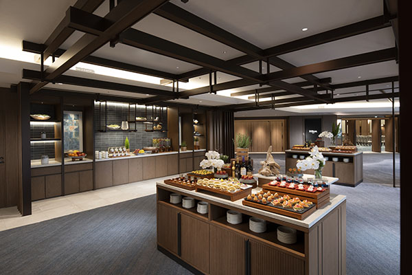 ホテル1階「マーブルラウンジ」のスイーツビュッフェは都内のホテルラウンジで最も予約が取れないと話題です。季節ごとにテーマが変わり、ストーリー性をもったスイーツやビュッフェ台の上に表現された立体的なプレゼンテーションなど、まるで物語の中に迷い込んだかのような世界観とともに30種類以上のスイーツや軽食をお楽しみいただけます。