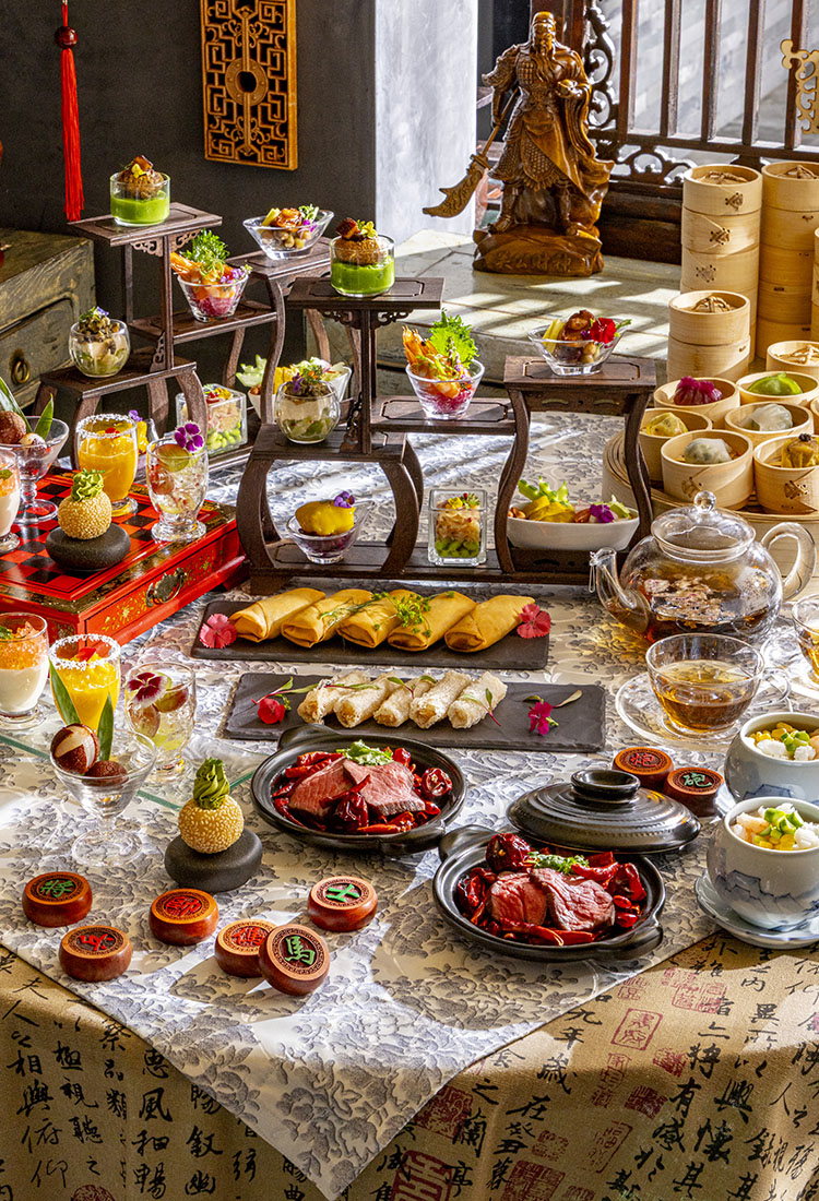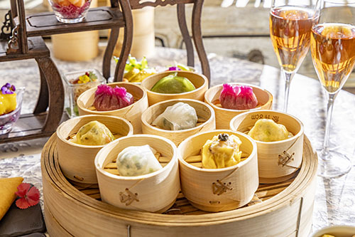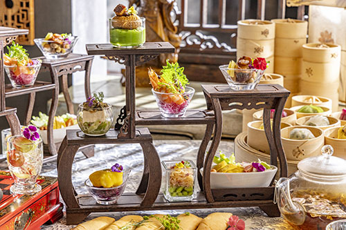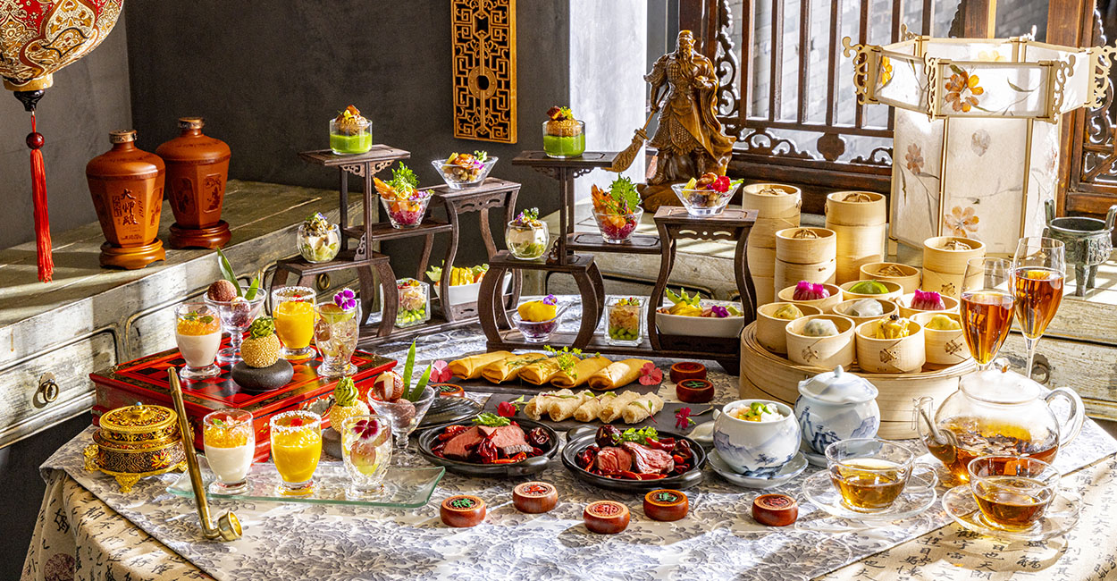 長きにわたり人々を魅了し続ける「三国志」をテーマにしたチャイニーズアフタヌーンティーでは、点心の食べ放題に加え、クラシカルなアフタヌーンティースタンドでお楽しみいただく「王朝」シェフズスペシャル9品、さらに4種類のスイーツやグラスライチ、こだわりの中国茶をお楽しみいただけます。