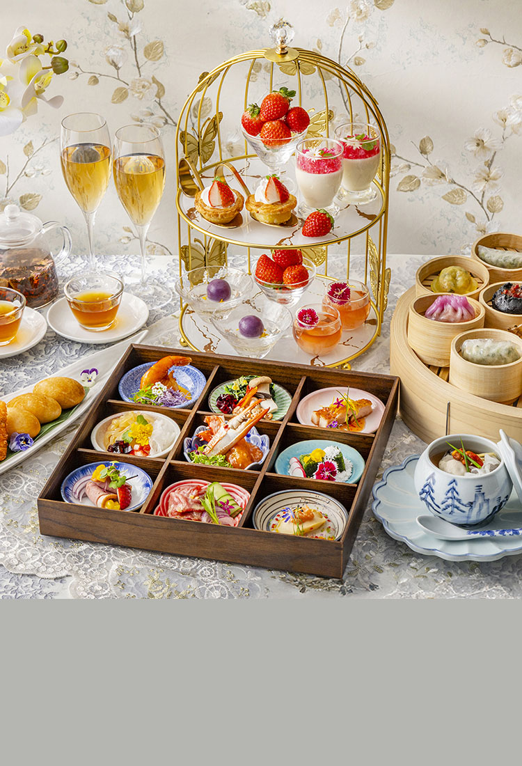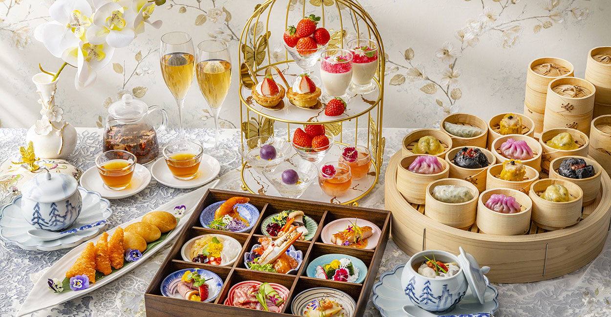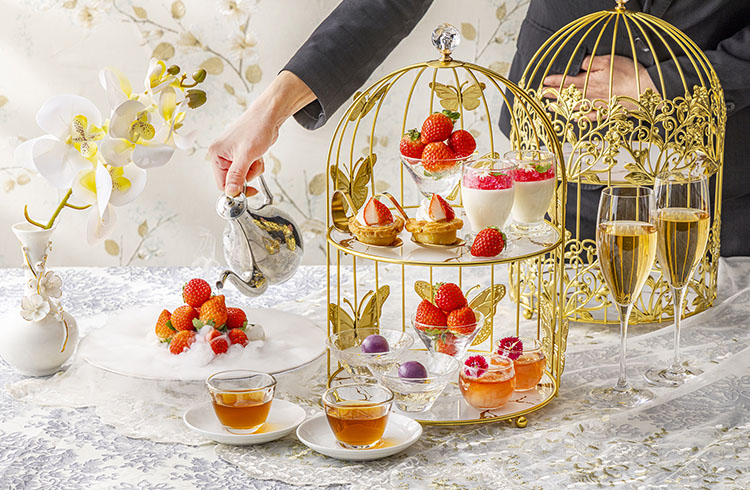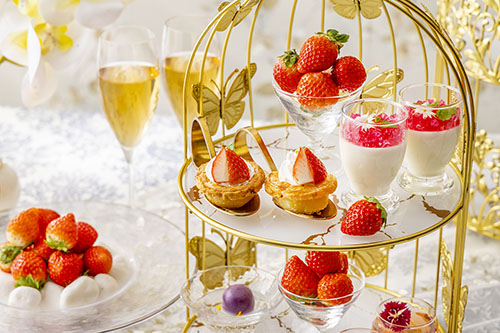 中国料理「王朝」では、12月27日(土)より、点心食べ放題と「王朝」のシェフズスペシャル10品、更に優雅な鳥籠風アフタヌーンティースタンドで楽しむ4種類のスイーツとフレッシュ苺がセットになった「苺シノワ・アフタヌーンティー」をご提供いたします。