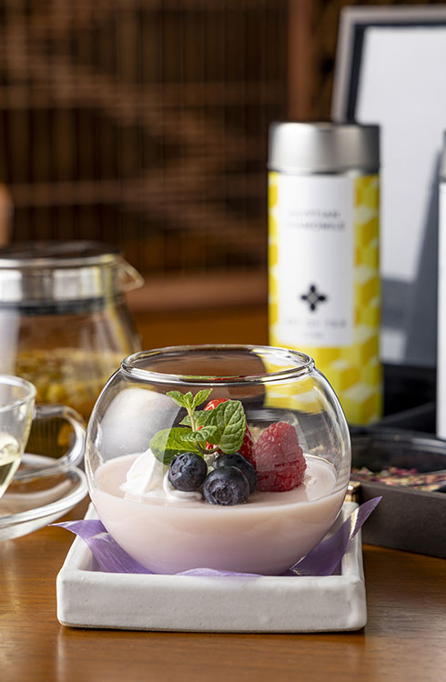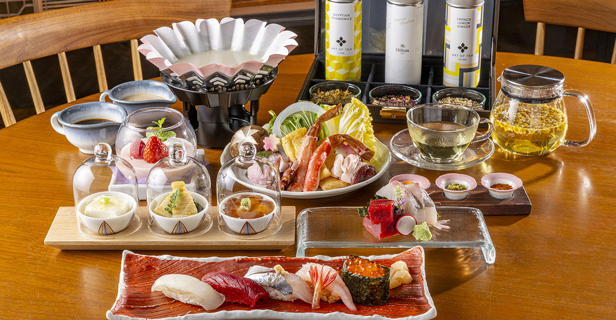 お鍋の後には、職人が丁寧に握る寿司5貫を。食後には、なめらかな口どけの苺豆乳プリンとともに、LA発最高級オーガニックティーブランドArt of Teaの紅茶をポットサービスでお楽しみいただけます。