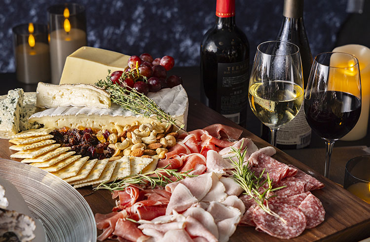 ワインやお酒にぴったりのシャルキュトリー&チーズコーナーは、自家製ピクルスと共にお召し上がりください。