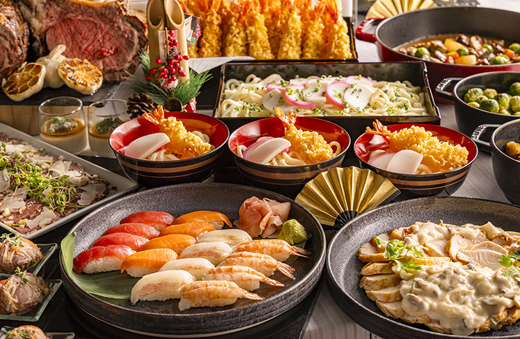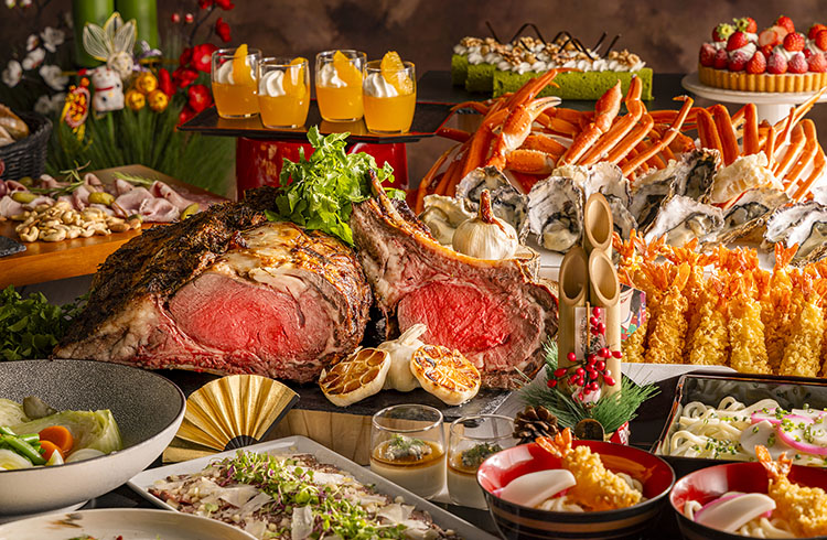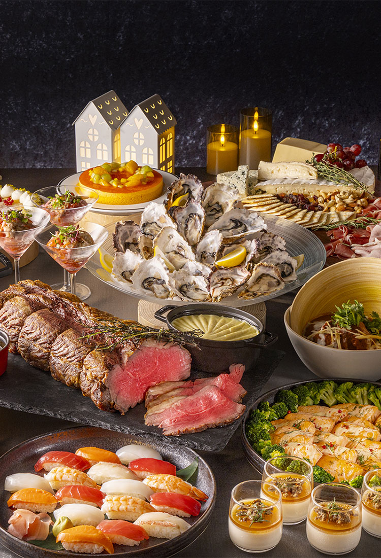 シーフードや豪華肉料理はもちろん、おせちやスイーツもふんだんにご用意しています。