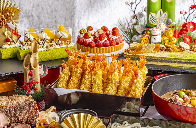 シーフードや豪華肉料理はもちろん、おせちやスイーツもふんだんにご用意しています。
