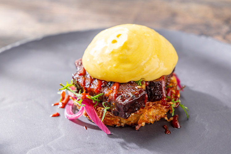 - バーベキューバーントエンド ロスティポテトのベネディクト