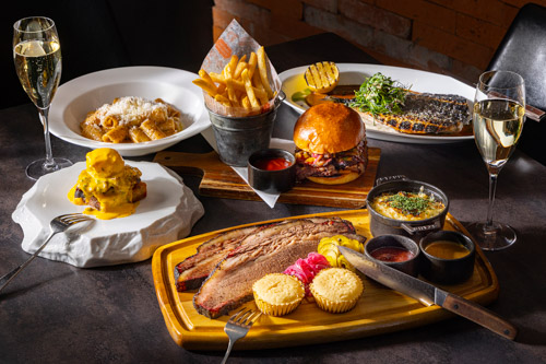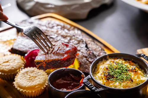 桜の薪やスモーカーを用いて仕上げる本格BBQスタイルの料理を主役に据えた週末限定のブランチ。